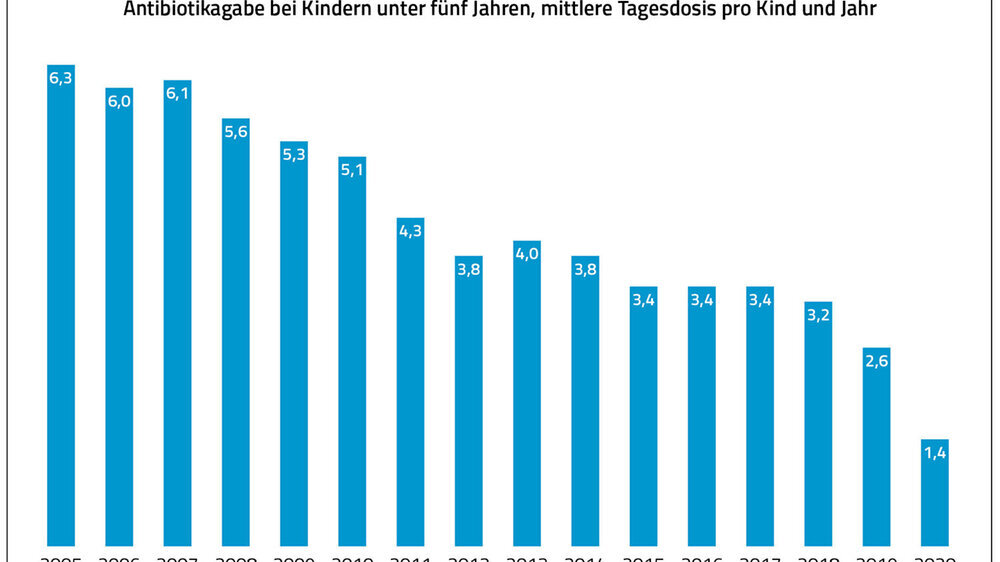 Bei der Antibiotikavergabe sei man bereits auf einem guten Weg. So habe sich die verordnete Antibiotikagabe bei Kindern bis fünf Jahren zwischen 2005 und 2019 mehr als halbiert. Im vergangenen Jahr sei die Menge noch einmal deutlich gesunken, wohl auch deswegen, weil die Abstands- und Hygieneregeln während der Corona-Pandemie zu weniger sonstigen Infektionen geführt hätten.