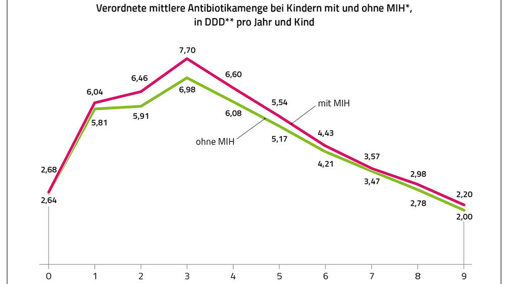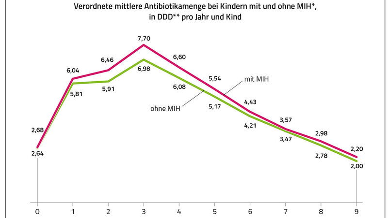 Bezüglich der Ätiologie konnte die langjährige Vermutung, dass Antibiotika eine MIH begünstigen, durch die Versicherungsdaten der Barmer bestätigt werden. Laut den Daten des Zahnreports besteht eine Korrelation zwischen Antibiotikaverordnungen in den ersten vier Lebensjahren und MIH. Dabei wurden bei Kindern mit Kreidezähnen gängige Antibiotika bis zu zehn Prozent häufiger angeordnet als bei anderen Kindern ihrer Altersgruppe.