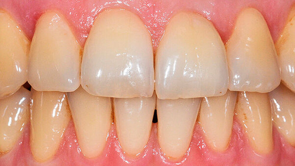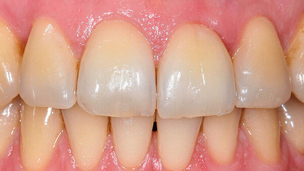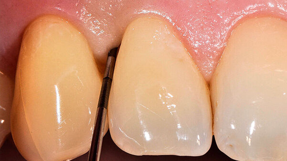 Die Patientin (44 Jahre alt, guter Allgemeinzustand) wies vor Behandlungsbeginn eine befriedigende Mundhygiene mit approximalen Belägen und Sondierungstiefen bis 7 mm auf (Abb. 1).