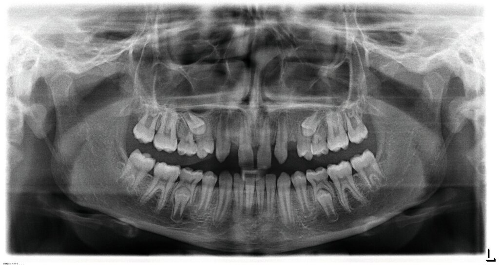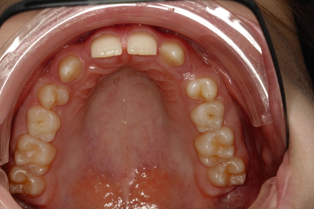 Bei dem gut zwölfjährigen Mädchen sind die seitlichen oberen Schneidezähne (Zähne 12 und 22) nicht angelegt. Zusätzlich zeigten sich verlagerte zweite obere Prämolaren.