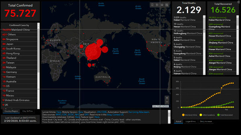 in Baltimore (USA) hat ein Übersichts-Website veröffentlicht, die WHO-Daten zu Infizierten und Toten in Echtzeit visualisiert, um die Verbreitung des Virus so besser nachverfolgen zu können. Das Dashboard enthält Informationen zu den Fallzahlen, der regionalen Verbreitung sowie dem Verlauf der Fallzahlen. Die Informationen werden in einer Karte und in entsprechenden Diagrammen angezeigt.