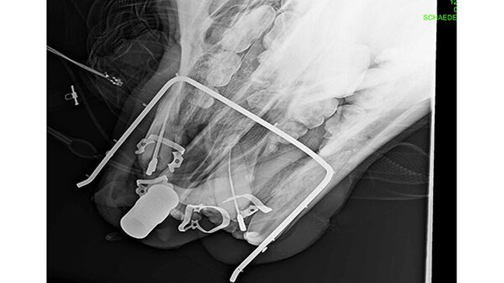 Die für Menschen geltenden Untersuchungsprinzipien sind auch hier richtig. Über ein digitales Röntgenbild des gesamten Schädels durch die tierärztlichen Kollegen habe ich als Zahnarzt in der Vergrößerung eine recht gute Information über die wichtigen Strukturen und kann dann meine Therapie planen. Eine dreidimensionale Darstellung mit deutlich besserer diagnostischer Aussage ist unter den Umständen in den Parks nicht durchführbar.