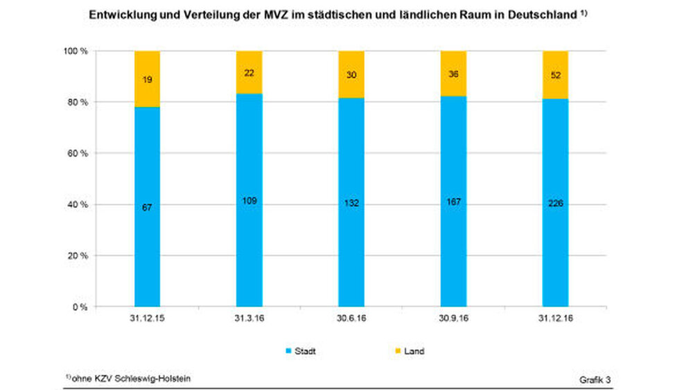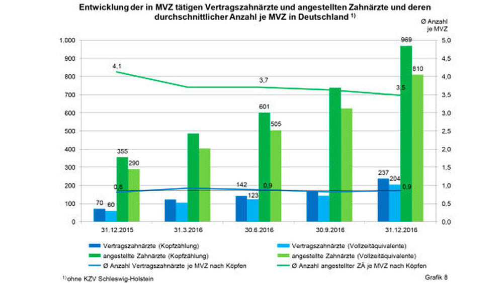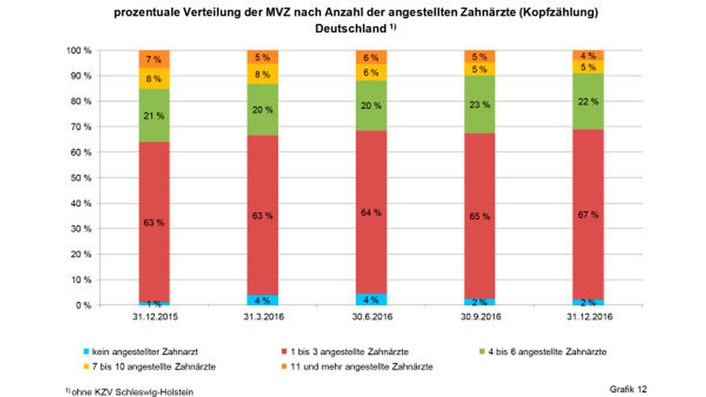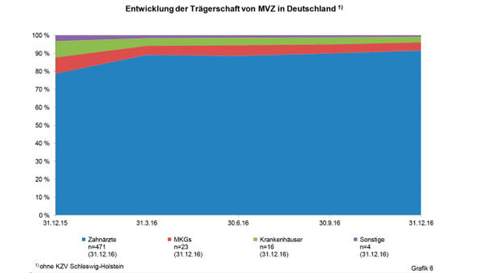 Vor dem Inkrafttreten des GKV-Versorgungsstärkungsgesetz zum 23. Juli 2015 belief sich die Zahl der zugelassenen medizinischen Versorgungszentren (MVZ) in Deutschland, die damals nur fachgruppenübergreifend betrieben werden konnten, auf 28. Bis Ende Dezember 2016 sind somit 260 neue MVZ hinzu gekommen, mit 230 die überwiegende Mehrheit als fachgruppengleiche MVZ. Dies geht aus einer aktuellen Statistik der Kassenzahnärztlichen Bundesvereinigung (KZBV) hervor. Weitere Daten finden Sie in unserer Bilderstrecke.