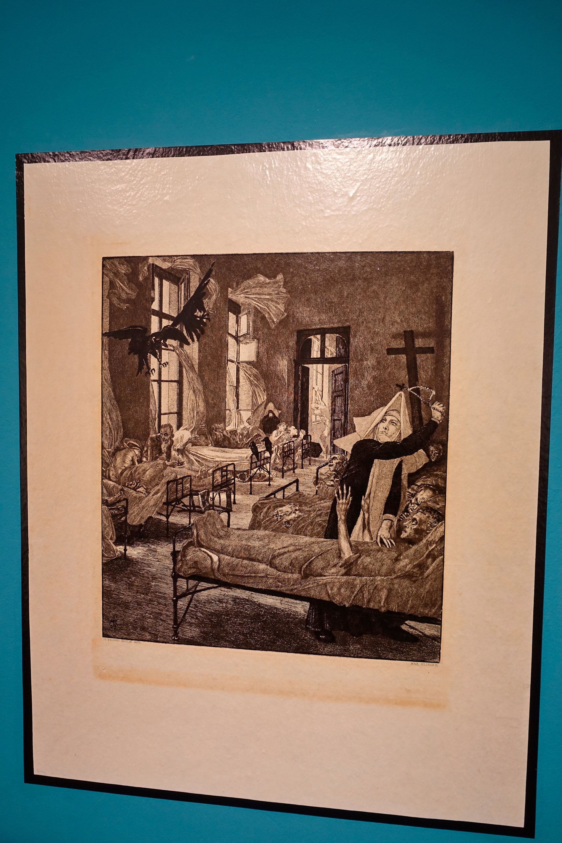 Die Objekte aus der Kunstsammlung von Prof. Dr. med. Dr. phil. Axel Murken, die jetzt in den Bestand des Museums übergehen, befassen sich mit den Themen Heilanstalten, Operationen, Glaube, Aberglaube und Heilung. Den Schwerpunkt in der Ausstellung bilden Werke um Tod, Vergänglichkeit und Epidemien.