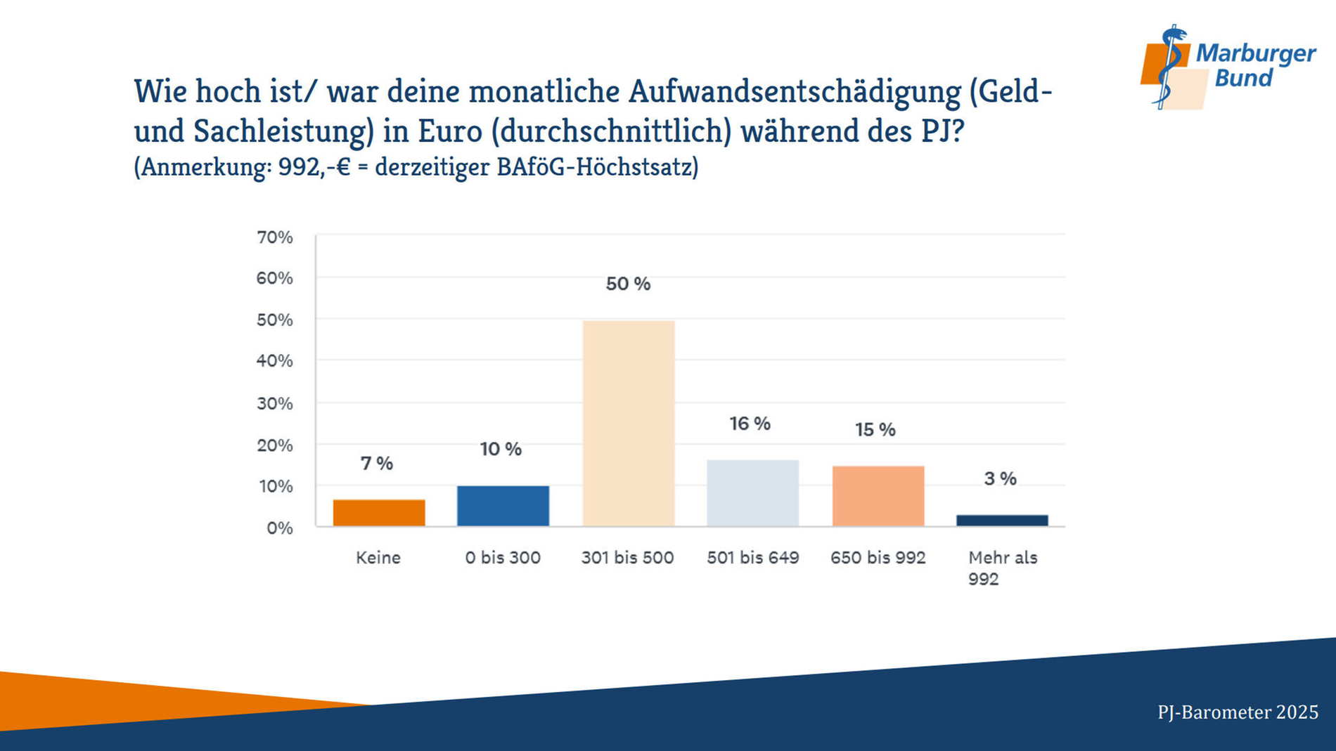 An der Befragung beteiligten sich im November/Dezember 2025 rund 1.800 Medizinstudierende im Praktischen Jahr sowie Ärztinnen und Ärzte, deren PJ nicht länger als drei Jahre zurückliegt. Knapp die Hälfte befindet sich aktuell im PJ. Zwei Drittel sind Frauen.
