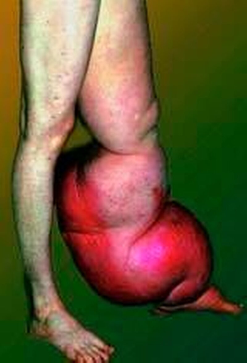 Andererseits können auch Schädigungen der Lymphbahnen infolge von Verletzungen oder beispielsweise durch Operationen zu einem Lymphödem führen, welches dann als sekundäres Lymphödem bezeichnet wird. Auch Infektionen können entsprechende Folgen haben. Anders als das primäre Lymphödem des Beines, das typischerweise im Unterschenkel- und Fußbereich beginnt, entwickelt sich die sekundäre Krankheitsform meist vom Oberschenkel aus.