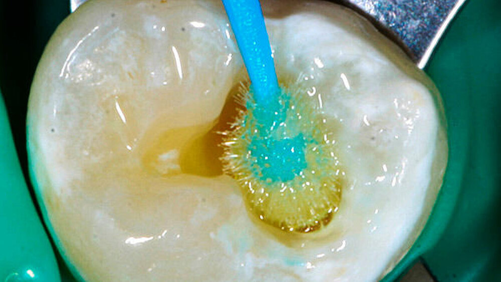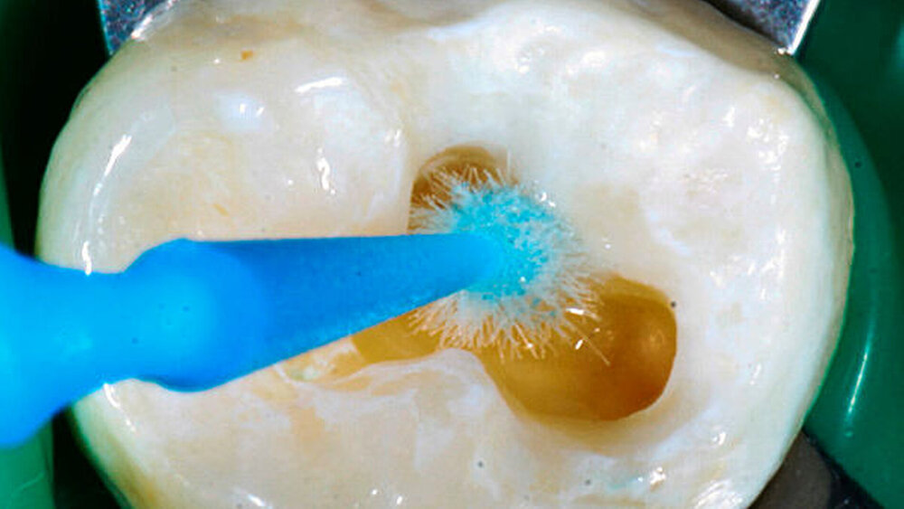 Bei den selbstätzenden Adhäsivsystemen ist eine separate Ätzung nicht zwingend erforderlich. Die Konditionierung geschieht hier mithilfe von sauren Monomer-Lösungen, die bereits im Adhäsivsystem enthalten sind. Es ist jedoch empfehlenswert, vor dem Auftragen eines selbstätzenden Adhäsivs die Schmelzanteile der Kavität mit Phosphorsäure zu konditionieren.