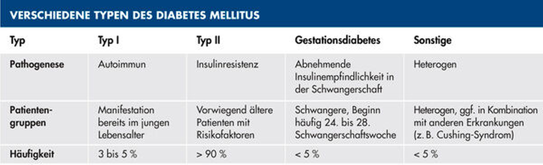 Beim Diabetes mellitus können verschiedene Typen unterschieden werden, wobei Typ I und Typ II die größte praktische Relevanz für den Zahnarzt aufweisen (Tabelle 1). Grundsätzlich zeichnet sich eine Diabeteserkrankung durch einen dauerhaft erhöhten Blutglukosespiegel aus (Tabelle 2). Der Typ-I-Diabetes stellt eine Erkrankung mit angeborener Genese dar, bei der es aufgrund der auto-immunen Destruktion von Pankreaszellen zum Insulinmangel und dadurch zu einer Hyperglykämie kommt [Atkinson et al., 2014]. Im Gegensatz hierzu stellt der Typ-II-Diabetes eine erworbene Insulinresistenz dar, die sich primär als Konsequenz der Lebensgewohnheiten (Übergewicht, Ernährungsweise, Rauchen, mangelnde Bewegung) entwickelt [Chatterjee et al., 2017].