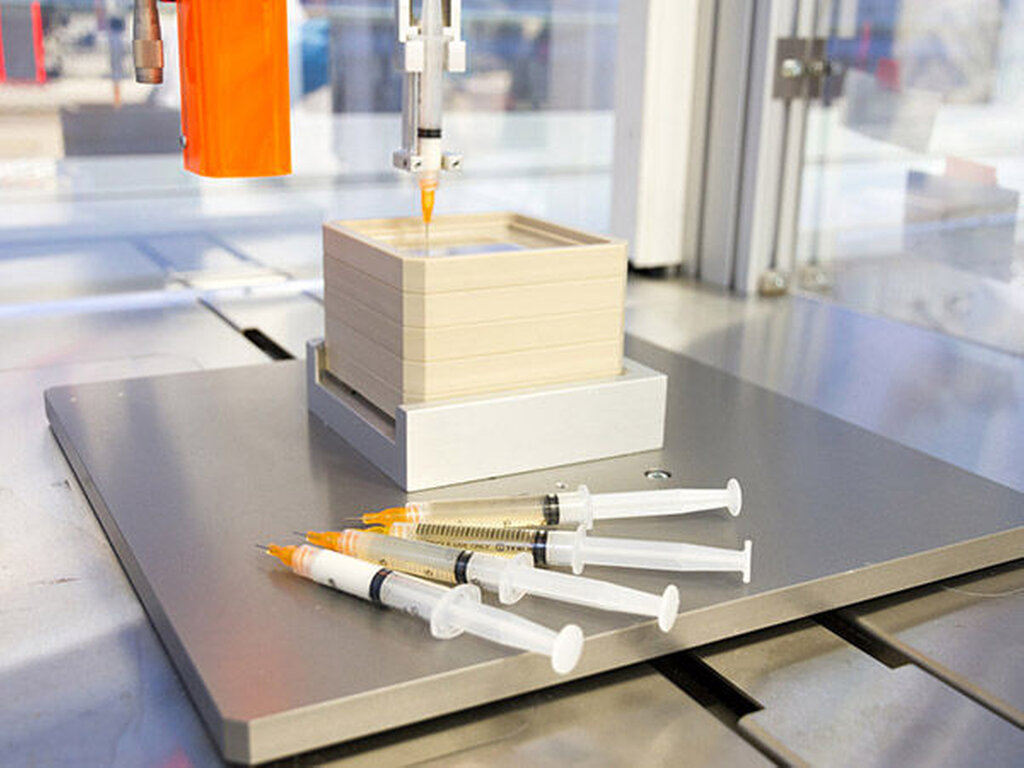 Im Stuttgarter Leistungszentrum "Mass Personalization" treibt das Fraunhofer IGB gemeinsam mit dem Fraunhofer-Institut für Produktionstechnik und Automatisierung IPA und der Universität Stuttgart seine Forschungsarbeiten voran. In der Querschnittsarbeitsgruppe "Additive4Life" entstehen neue Technologien und druckbare Biomaterialien für das Bioprinting.