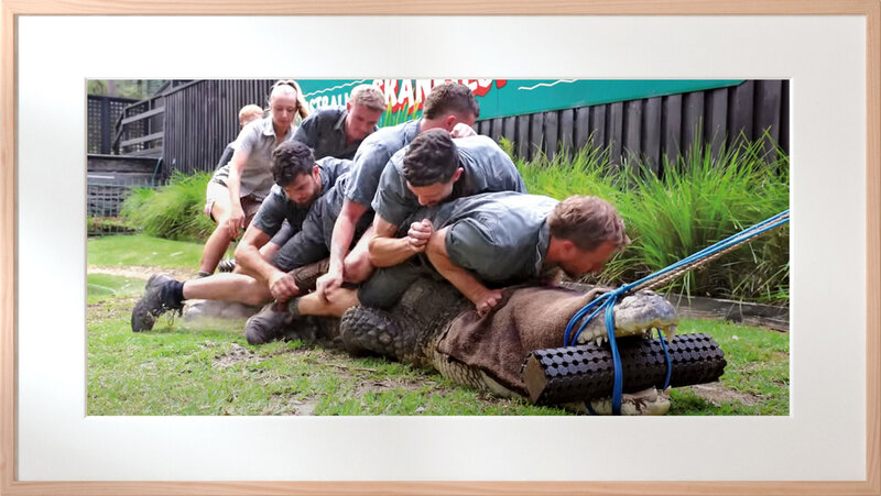 So in etwa sah die Ausgangslage für Veterinärin Dr. Robin Crisman aus, als sie im Australien Reptile Park in Somersby an der Küste von New South Wales, Australien, auf das knapp fünf Meter lange Salzwasserkrokodil Elvis traf, das den Titel „Autralias crankiest croc“ trägt. Als OP-Vorbereitung wurde Elvis mit einem gepolsterten Beißholz und einer doppelte Schlinge ums Maul versehen und durch sieben rittlings aufsitzende Pflegerinnen und Pfleger bereit für die Injektion gemacht.
