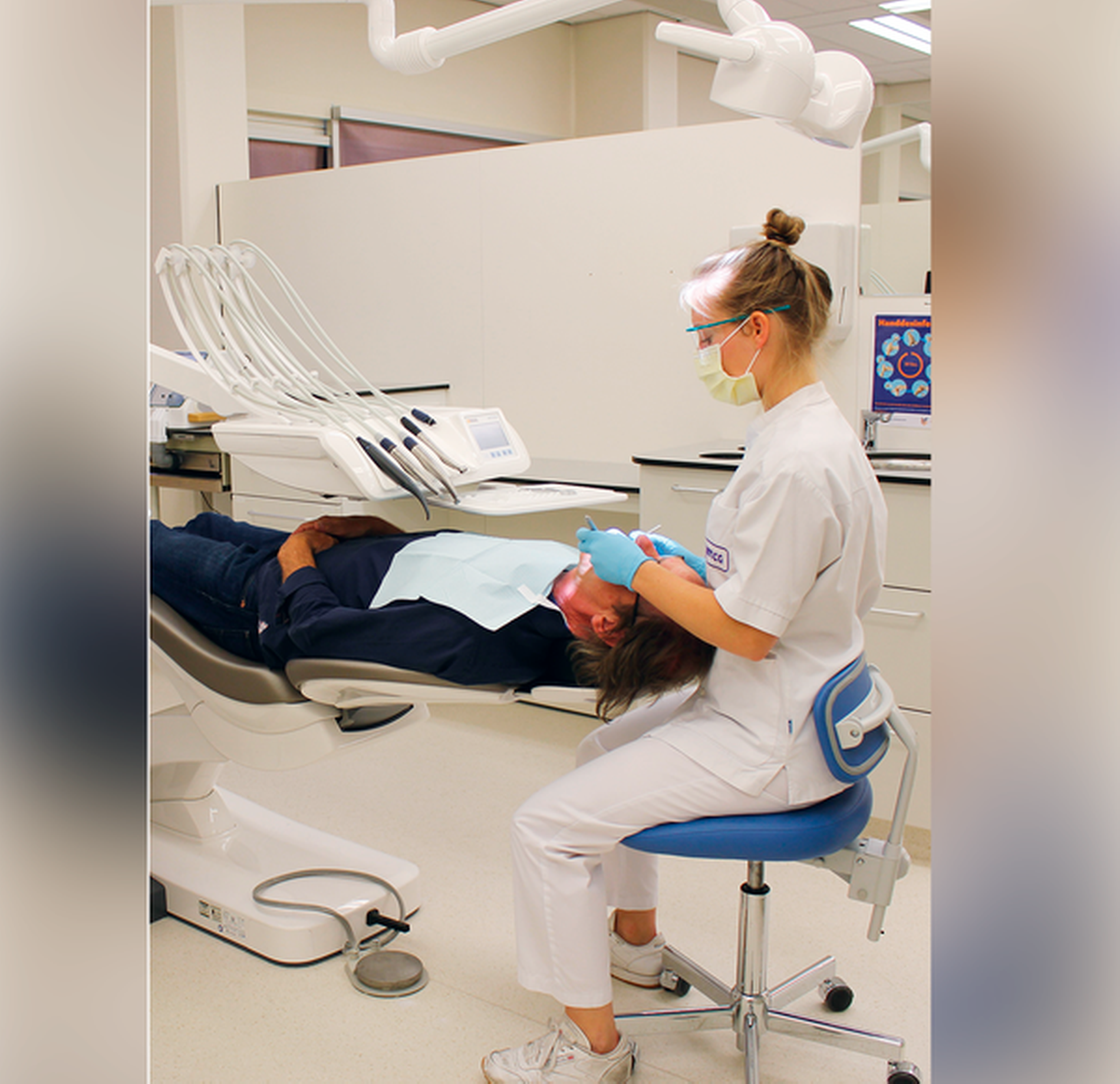 Für eine gesunde Ergonomie ist der Wechsel zwischen Sitzen, Stehen und Gehen entscheidend. „Wer immer wieder seine Haltung wechselt, tut sich einen Gefallen“, so der Experte. Zum Arbeiten gehören übrigens zwingend auch Pausen. Rotgans: „Pausen sind wichtig für die Propriozeption. Angefangen bei einer Mini-Pause im Workflow, in der man kurz die Muskeln entspannt und einmal in sich ‚zusammensacken‘ kann, über eine Makro-Pause zwischen den Behandlungen mit der Zeit für einen Kaffee, bis hin zur normalen Pause, in der man den Arbeitsplatz verlässt und sich draußen bewegt.“