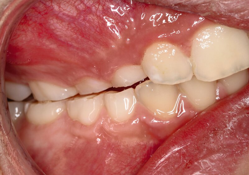 Nicht zuletzt können auch morphologische Gegebenheiten eine ausschlaggebende Rolle in Bezug auf Bruxismus spielen. So können gewisse Zahn- und Kieferfehlstellungen Attritionen fördern, wie dies zum Beispiel beim Kopf- oder Deckbiss der Fall ist (Abbildung 5), während andererseits große vertikale Abweichungen oder sagittale Stufen selten zu klinischen Bruxismuszeichen führen, weil die Zähne nicht in Okklusion stehen. Dies ist meist recht einfach zu diagnostizieren.