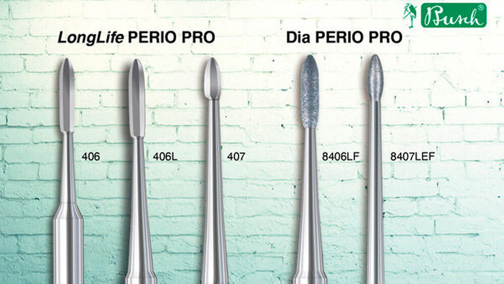 Ob der Behandler Instrumente aus Hartmetall die LongLife Perio Pro oder diamantierte Instrumente die Dia Perio Pro bevorzugt, Busch hat beides. Man kann aus zehn unterschiedlichen Varianten zum Entfernen von supra- und subgingivalem Zahnstein sowie zum Glätten natürlicher Plaqueretentionsstellen wählen.