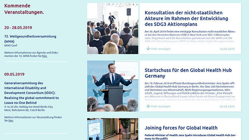 Das Netzwerk soll den Austausch in internationaler Gesundheitspolitik vereinfachen und unterschiedliche Akteure in diesem Politikbereich zusammenbringen. Schwerpunktthemen sind Prävention von nicht-übertragbaren Krankheiten, der Kampf gegen Antibiotika-Resistenzen sowie die Erforschung von digitalen Lösungen zur Verbesserungen von Gesundheitsdienstleistungen weltweit.