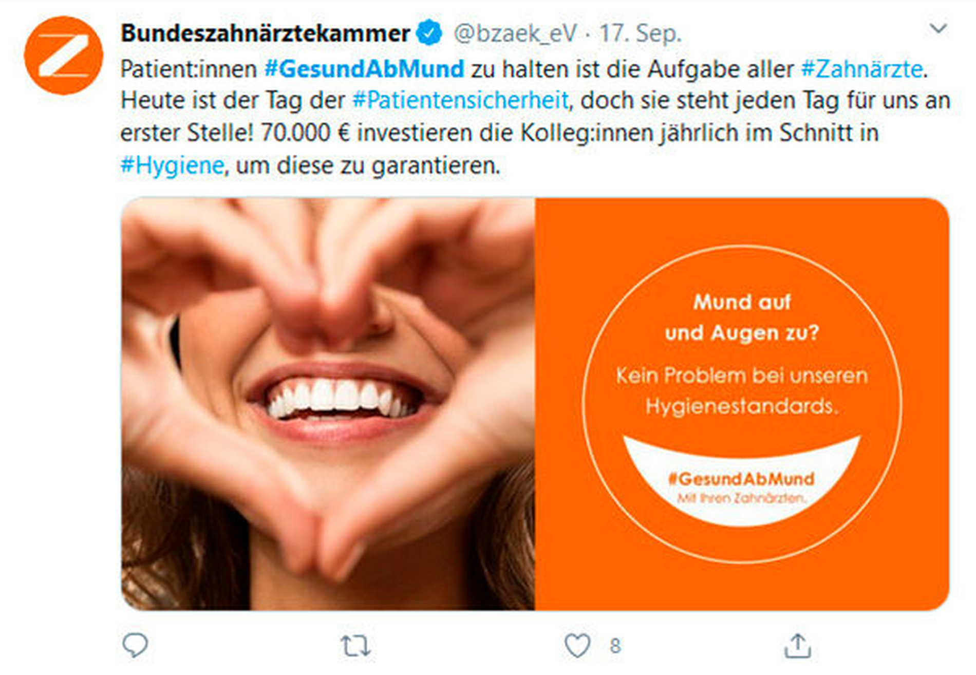 "Die Corona-Krise hat Patient:innen stark verunsichert. Sollte man die Zahnarztpraxis nur in dringenden Fällen aufsuchen? Ist ein Vorsorgetermin jetzt notwendig? Steigt beim Zahnarztbesuch nicht die Gefahr einer Infektion?", schreibt die BZÄK. Und " Auf diese und viele andere Fragen möchten und müssen wir (...) reagieren."