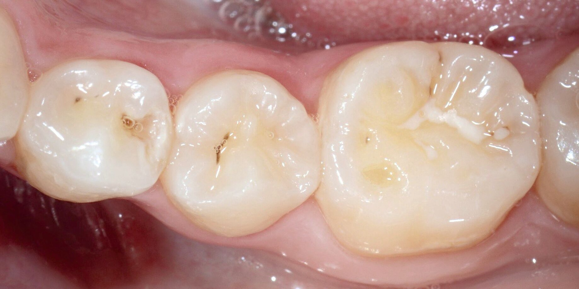 Im Rahmen der klinischen Diagnostik lassen sich nur begrenzt Unterschiede zwischen Emesis-bedingten Erosionen und anderen Formen von erosiven Zahnhartsubstanzdefekten feststellen. Häufig stellt nur die Lokalisation der entstandenen Erosion im Zahnbogen einen Ansatz dar, Rückschlüsse auf mögliche Ursachen der Defekte zu ziehen. Bei Patient*innen mit Essstörungen treten die Defekte meist an den palatinalen und lingualen Zahnoberflächen im Frontzahnbereich durch den Erstkontakt mit der Magensäure in Erscheinung. Auch muldenartige, okklusale Defekte im Seitenzahnbereich sind oftmals erkennbar (Abbildung 2). Im Gegensatz dazu führt die exogene Säureaufnahme in Form von Lebensmitteln, etwa übermäßiger Fruchtsäurekonsum, zu einem sichtbaren Säureangriff an den bukkalen Zahnflächen. Insbesondere bei dieser Patientengruppe ist durch eine obstreiche Ernährungsweise häufig eine Mischform anzutreffen. Zähne, die von Erosionen befallen sind, haben daher durch die abnehmende bis hin zur fehlenden Schmelzschicht ein erhöhtes Kariesrisiko. Die Erstdiagnose einer Essstörung erfolgt dabei nicht von uns Zahnärzt*innen. Wir sehen uns in einer beratenden Rolle, die gegebenenfalls die ersten klinischen Hinweise sieht und unsere Patient*innen dementsprechend aufklärt.