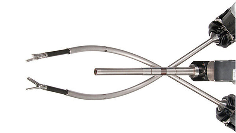 Kleine Schnitte, wenig Blut: Dafür sitzt der Chirurg wie an einer Spielkonsole einige Meter vom OP-Tisch entfernt und steuert Zangen, Messer, Scheren oder Nadeln mit Händen und Füßen fern.