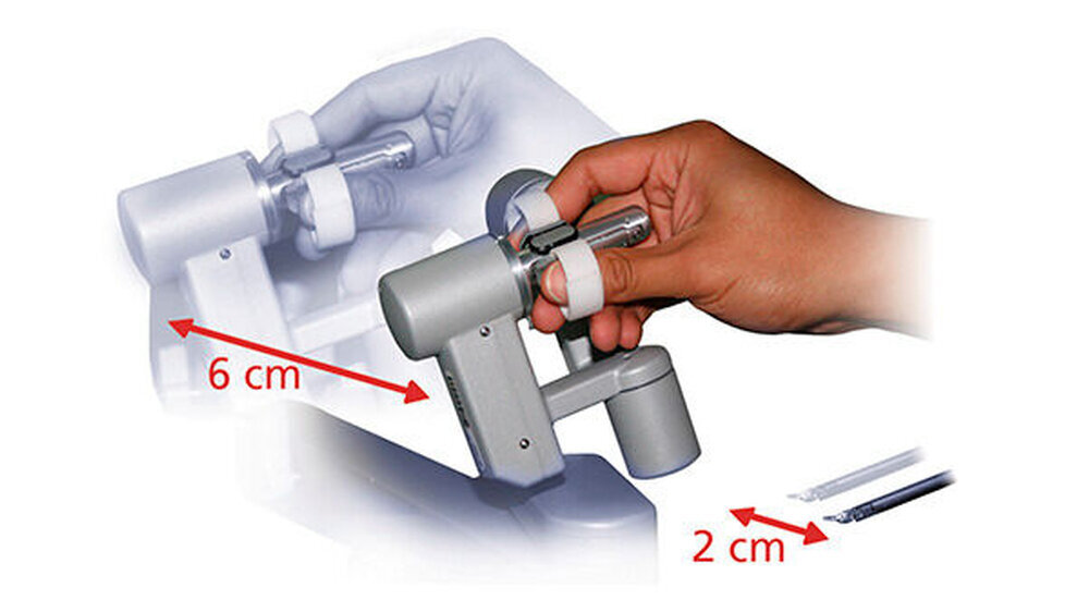 Der neue Platz für den Chirurgen im OP erinnert an eine Mischung aus Spielkonsole und Flugsimulator. Daumen und Zeigefinger stecken in schmalen Ringen aus Plastik, die Hände steuern das OP-Besteck fern. Die Füße ruhen auf Pedalen. Auf die Berührung reagiert eine winzige Kamera, die das Geschehen im Körper filmt oder ein "dritter Arm". Früher hätte dafür ein Kollege am OP-Tisch assistieren müssen.