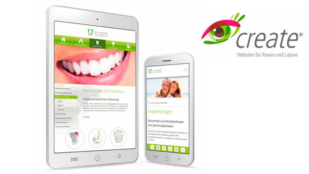 Was macht eine professionelle Website erfolgreich? Das hochwertige Webdesign, die grafische Komposition, der souveräne Einsatz von Farbe und Schrift, moderne Technik und die intuitive Bedienbarkeit der Website. Doch genauso wichtig ist der Inhalt. All das bietet create: Neben modernen Designs, die das Team von Dentaurum ganz kundenindividuell in Form und Farbe umsetzt, stehen umfangreiche Bildwelten zur freien Auswahl. Vorgefertigte, fachlich korrekte Texte zu allen Themen aus der Implantologie, allgemeinen Zahnheilkunde, Kieferorthopädie und Zahntechnik ersetzen aufwendige Schreibarbeit. Die Kombination aus Bild und Text gibt einen optimalen Einblick in die Leistungen von Praxis und Labor. Diese vielfältigen Inhalte verwandeln die Website in ein interessantes zahnmedizinisches Informationsportal für Patienten.