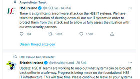 Wie der IT-Sicherheits-Nachrichtendienst bleepingcomputer.com berichtet , haben die Kriminellen den Behörden kostenlos eine Entschlüsselungssoftware zur Verfügung gestellt, womöglich um den Schaden zu begrenzen. Seit die mit Ransomware angegriffene Gesundheitsbehörde Health Service Executive (HSE) am 14. Mai ihr IT-System herunterfahren musste, kommt es laut Behördenangaben zu erheblichen Einschränkungen.