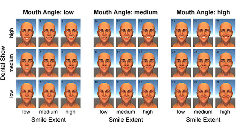 Für ihre Studie ließen die Wissenschaftler um Nathaniel Helwig von der University of Minnesota in Minneapolis die Probanden 3-D-Animationen von lächelnden Gesichtern bewerten. Die Teilnehmer sollten angeben, was das Gesicht ausdrückte und wie echt, gelungen und angenehm sie das Lächeln empfanden. Mithilfe der Antworten errechneten die Wissenschaftler, was ein gelungenes Lächeln ausmacht.