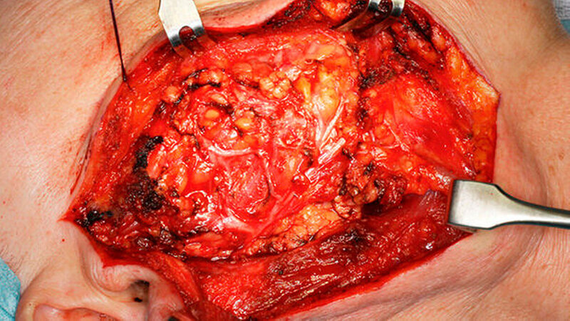 Änderungen des Wachstumsverhaltens mit plötzlich rapider Größenprogredienz oder Fazialisschwächen beziehungsweise peripheren Fazialisparesen können ein Hinweis auf eine maligne Transformation sein. Ein Karzinom im pleomorphen Adenom tritt in etwa zwei bis fünf Prozent der Fälle auf [Som et al., 2003]. In seltenen Fällen wurden auch lokoregionäre Situationen und Fernmetastasierungen beschrieben. Einer Metastasierung gehen dabei meist über einen langen Zeitraum auftretende Lokalrezidive voraus [Wenig et al., 1992]. Auch eine intraoperative Tumorverletzung mit diffuser Aussaat kann ursächlich für das Auftreten disseminierter Adenome sein [Tarsitano et al., 2014].