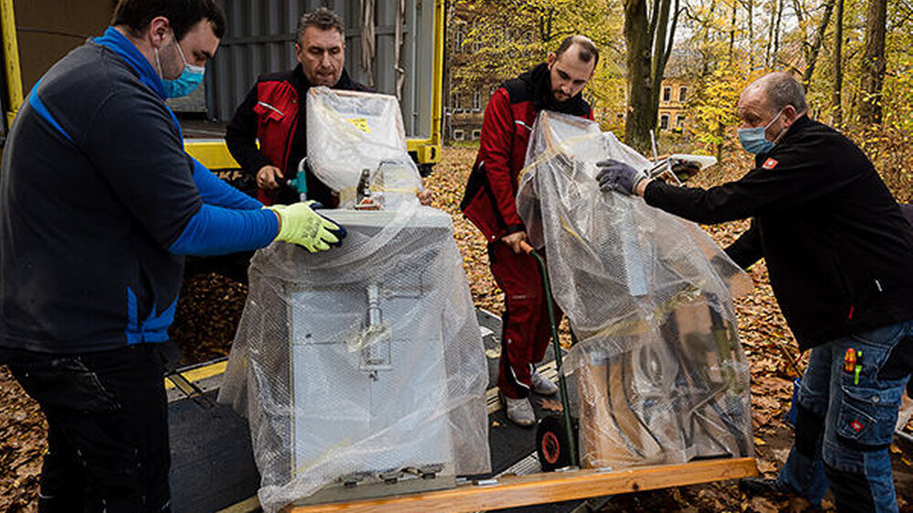 Zuvor hatte die Sammlung rund 20 Jahre in einem Container gelagert. Prof. Dr. Christoph Benz, Vizepräsident der Bundeszahnärztekammer, Dr. Thomas Breyer, Präsident der Landeszahnärztekammer Sachsen, und Museumsgründer, Zahntechnikermeister Andreas Haesler, sprachen von einem herausragenden Tag für die Geschichte der Zahnmedizin. Die weltgrößte dentalhistorische Sammlung wird damit noch umfangreicher und vielfältiger. Möglich wurde der Umzug durch die Spendenaktion „Dentales Erbe“.
