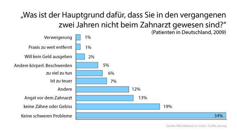 Rund ein Fünftel der Deutschen hat extreme Angst vor einem Zahnarztbesuch. Oft geht die Dentalphobie so weit, dass die Praxisräume jahrelang nicht aufgesucht werden. Eine Umfrage zeigt, wovor sich die Betroffenen am meisten fürchten.