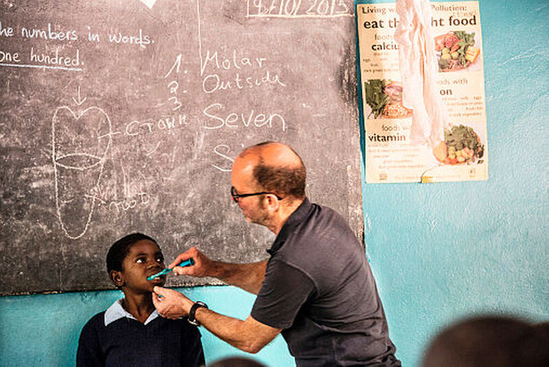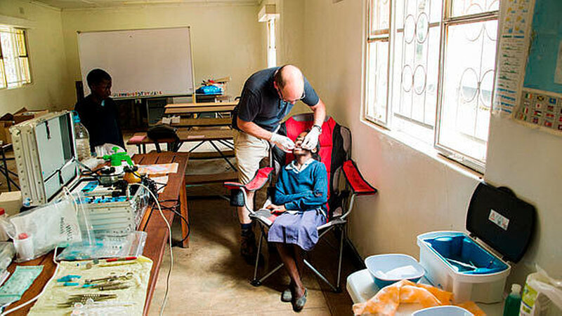 Im Oktober 2015 ging ich gemeinsam mit Louis und diversen zahnmedizinischen Geräten im Gepäck auf die Reise nach Chimfunshi, dem sogenannten Copperbelt, einem großen Gebiet am Kafue River im Norden Sambias an der Grenze zum Kongo. Den ersten Tag begannen wir mit einem kleinen Workshop in der dortigen Schule. Die Lehrer übersetzten vom Englischen ins Bemba, der dort vorherrschenden Sprache. Auf die Frage, wer eine Zahnbürste besitzt, meldeten sich sechs von 130 Kindern. Dann wurde über den richtigen Umgang mit Zahnbürste und Zahnpasta gesprochen. Die anschließende Befundaufnahme fand unter freiem Himmel auf dem Schulhof statt. Nach drei Tagen hatten wir alle Kindermünder begutachtet und zum Großteil auch deren Zähne gesäubert. Zum Dank gaben wir leuchtende Zahnbürsten aus.