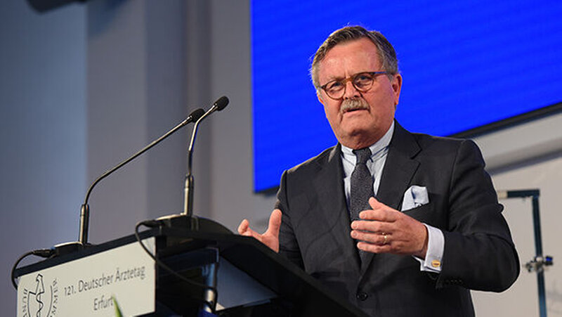 Mit der Aussage „Diese Modelle - vor allem die Bürgerversicherung - sind in Wahrheit die Krankheit, als deren Therapie sie sich ausgeben“ stellte sich Montgomery klar gegen SPD, Grüne und Die Linke.