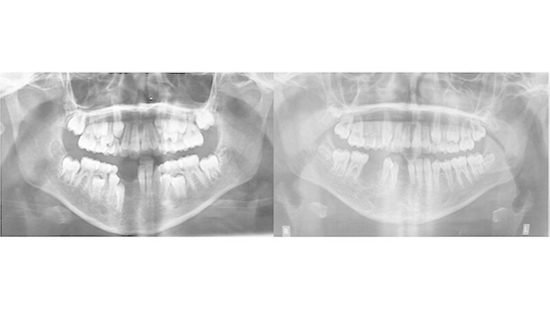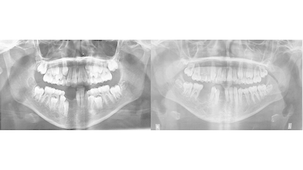 Ausgangssituation:Im Alter von 9 Jahren wurde die Patientin aufgrund gelockerter Zähne im vierten Quadranten des bleibenden Gebisses mit rezidivierenden Zahnfleischblutungen vorstellig. Die anschließend durchgeführte Diagnostik mit Probengewinnung bestätigte den Verdacht einer arteriovenösen Malformation.