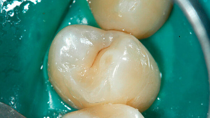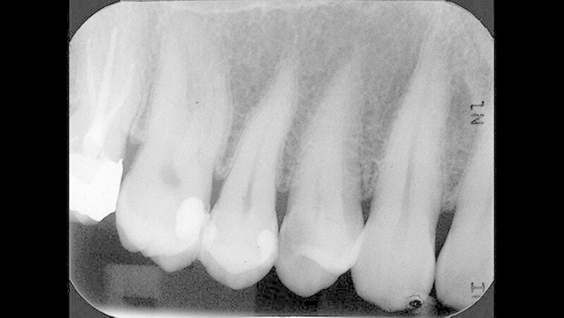 Ein 43-jähriger Patient stellte sich zur Routinekontrolle in der Poliklinik für Zahnerhaltung des Universitätsklinikums Münster vor. Die allgemeinmedizinische Untersuchung zeigte keine Besonderheiten. Sowohl der klinische zahnmedizinische Befund als auch die angefertigte Röntgenaufnahme deuteten auf eine Approximalkaries distal an Zahn 14 hin (Abbildungen 1 und 2). Daher wurde der Patient auf die Notwendigkeit einer Füllungstherapie hingewiesen.