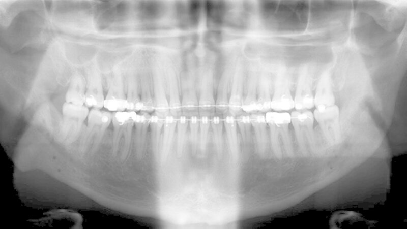 Mit einer Säge wurde ein gezielter Knochenschnitt durchgeführt. Nach der Präparation wurde der zahntragende Abschnitt des Oberkiefers vom restlichen Gesichtsschädel gelöst. Erst wurde die Bisssituation anhand des Bissschlüssels exakt eingestellt, dann mit 2 mm dicken Osteosyntheseplatten aus Titan der Knochen in der neuen Position mithilfe von Titanschrauben fixiert.