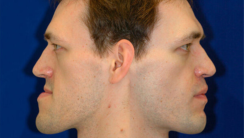 Das deutlich harmonischeres Profil drei Monate nach der Operation: Im Mai des nachfolgenden Jahres wurden die Metallplatten in einem ambulanten Eingriff wieder entfernt. Eine Multibandapparatur hält die Zähne noch "in der Reihe". Der Patient kann heute dank der individuellen innovativen Behandlung ein normales Leben führen, die Gesichtsästhetik und seine Kaufunktion sind vollständig wiederhergestellt.