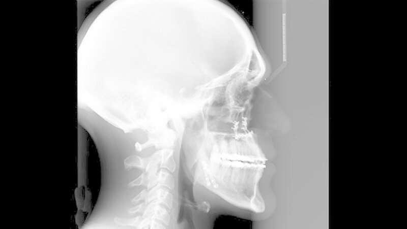 Die neue Position wurde mit einem zweiten Bissschlüssel, der die endgültige Bisssituation einstellt,zugeordnet und mit Osteosyntheseplatten und -schrauben gesichert. Die Operation ging mit einem stationären Aufenthalt von nur fünf Tagen einher.