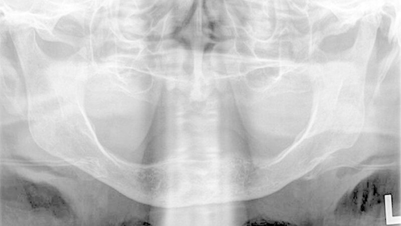 Eine 87-jährige Patientin wurde im November 2014 erstmals über unsere zentrale Notaufnahme vorstellig. Sie berichtete über starke Schmerzen im Bereich des linken Kiefergelenks. Die Beschwerdesymptomatik sei jedoch unter lokal abschwellenden Maßnahmen sowie der hochdosierten Gabe von Antiphlogistika, die ihr von ihrem Hauszahnarzt bereits verordnet wurden, etwas rückläufig.