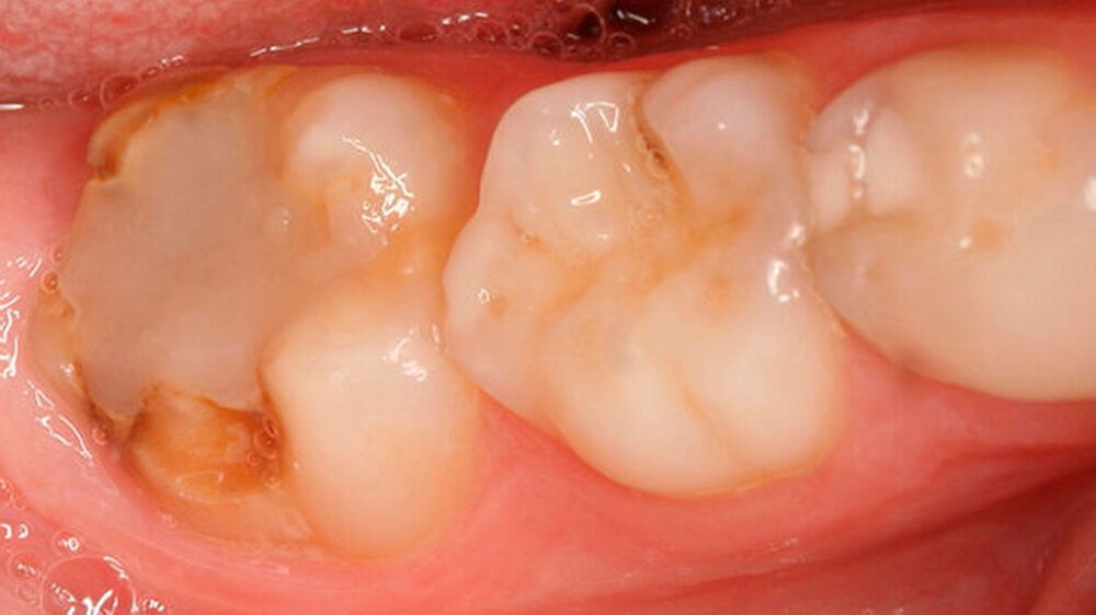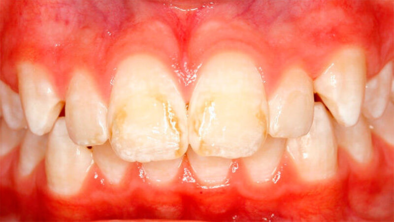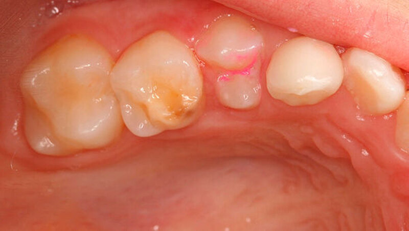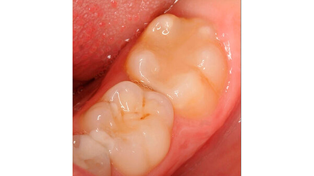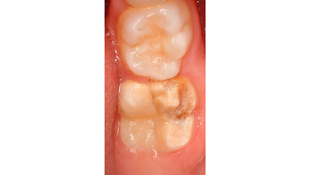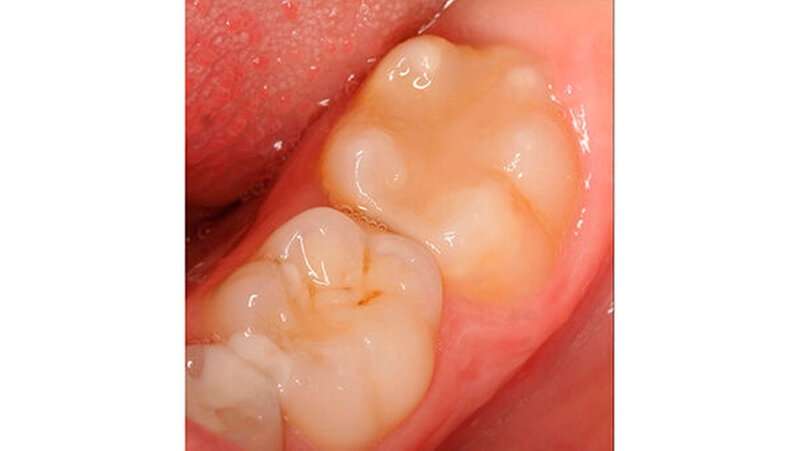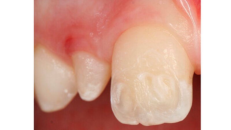 Mit dem Durchbruch der ersten bleibenden Molaren treten dann bisher unbekannte Beschwerden auf wie zum Beispiel eine übermäßig ausgeprägte Kälte-/Wärmeempfindlichkeit. Für manche Kinder wird dadurch nicht nur die Mundhygiene sondern auch die Nahrungsaufnahme erschwert. Zusätzlich bricht oft schon in der Durchbruchs-Phase der Schmelz ein (Abbildung 1), was die Überempfindlichkeit in teils akute Zahnschmerzen übergehen lässt.