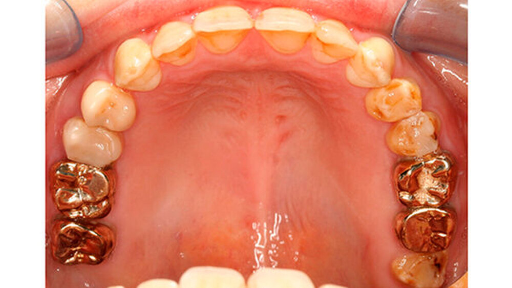 Laborrestaurationen: Neben den in dieser Fallserie schon vorgestellten kompositbasierten Laborrestaurationen (vgl.//www.zm-online.de/home/zahnmedizin/Der-Fall-Verdacht-auf-Fluorose_271574.html#6):Fall auf zm-online) können auch metallbasierte Restaurationen zum Einsatz kommen. Grundsätzlich wird eine Forderung nach möglichst zahnhartsubstanzschonenden Materialien ausgesprochen, um mögliche Schäden der Pulpa zu vermeiden.