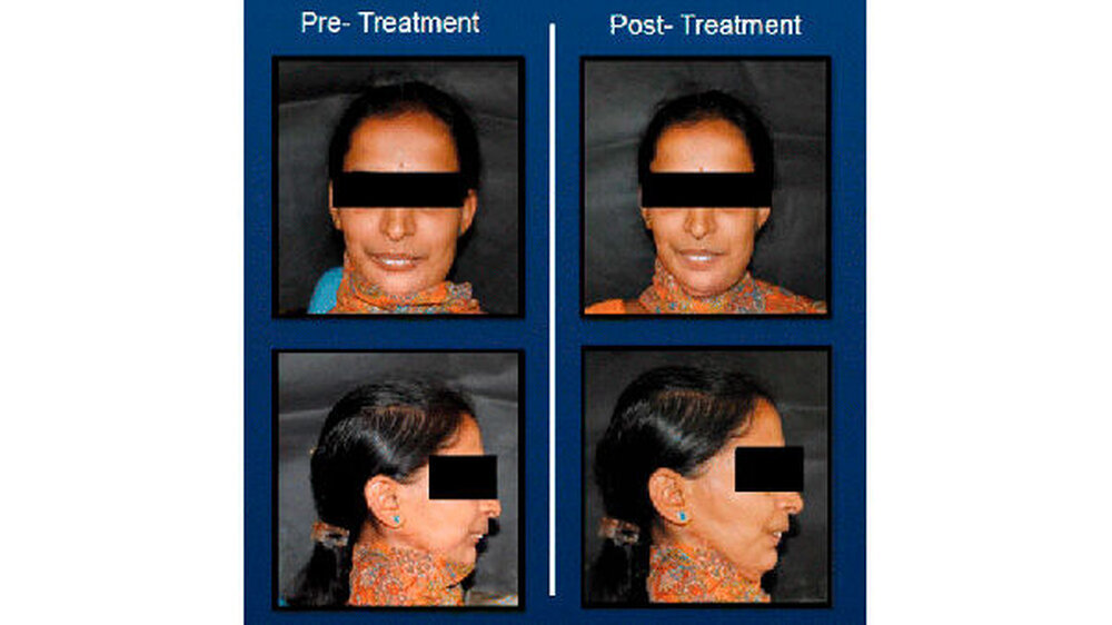 Nach zwei Jahren berichtet die Patientin, dass sie mit der Prothese sehr gut zurecht kommt und abgesehen von Nüssen und Fleisch ganz normal essen kann. Sie spricht klar und deutlich, und ihre Gesichtsproportionen sind im Vergleich zu vorher symmetrischer.