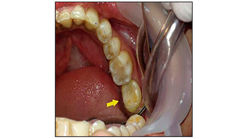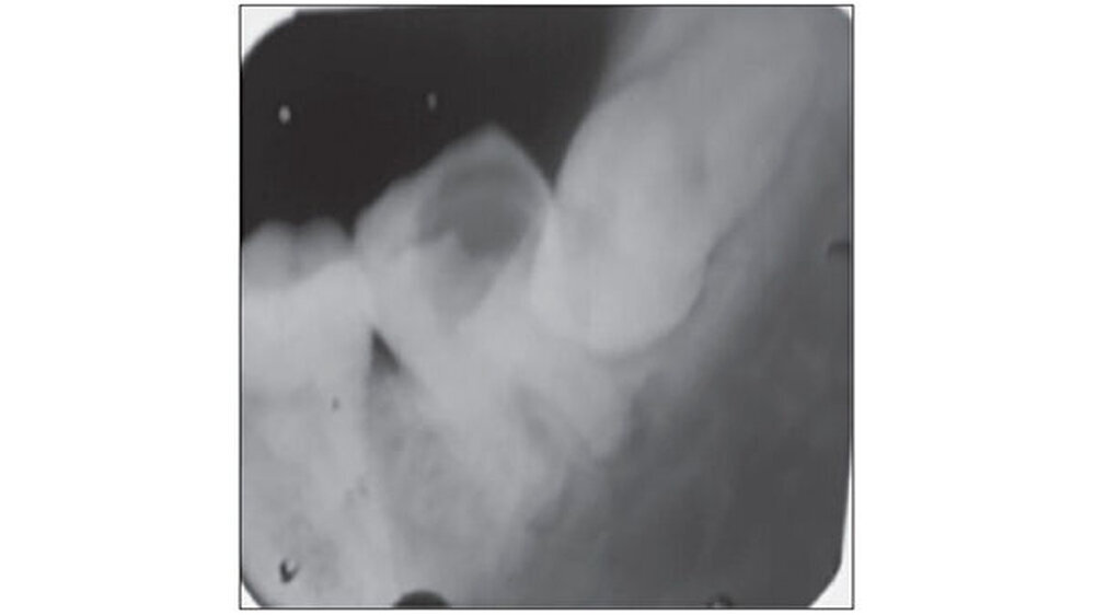 Eine 27-jährige Patientin stellte sich mit Schmerzen im linken Unterkiefer in der Abteilung für Zahnerhaltung und Endodontie am Himachal Dental College in Himachal Pradesh , Indien, vor. Die klinische und radiologische Untersuchung ergab, dass der Zahn 37 stark kariös war. Zudem lag eine chronische irreversible Pulpitis und apikale Parodontitis vor. Der Zahn 38 zeigte horizontale Einbrüche (Abbildung 1). Daher wurde beschlossen, 37 und 38 gleichzeitig zu extrahieren und den 38 in die Extraktionsstelle des 37 zu transplantieren.