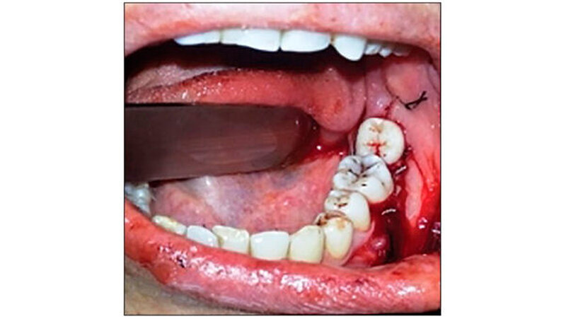 Der jungen Frau wurde empfohlen, das Kauen für ein paar Tage auf der operierten Seite zu vermeiden und weiche Nahrung zu sich zu nehmen. Zudem spülte sie - vorsichtig - zweimal täglich mit 0,2 Prozent w / v Chlorhexidingluconat (Rexidin, Indoco-Remedies Ltd., Indien). Sie wurde auf Amoxicillin 500 Milligramm (Novamox, Cipla Ltd., Indien) dreimal am Tag, Metronidazol 400 Milligramm (Metron, Ulticare-Alkem Laboratories, Indien) dreimal täglich und Ibuprofen 400 Milligramm (Flexon, Aristo Pharma Pvt Ltd, Indien) dreimal täglich über einen Zeitraum von sieben Tagen medikamentiert. Die Fäden wurden nach sieben Tagen gezogen.