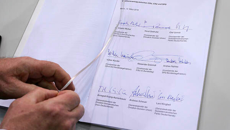 Die Große Koalition geht in die nächste Runde: Die Spitzen von Union und SPD haben in Berlin den Anfang Februar ausgehandelten 177-seitigen Koalitionsvertrag unterzeichnet.