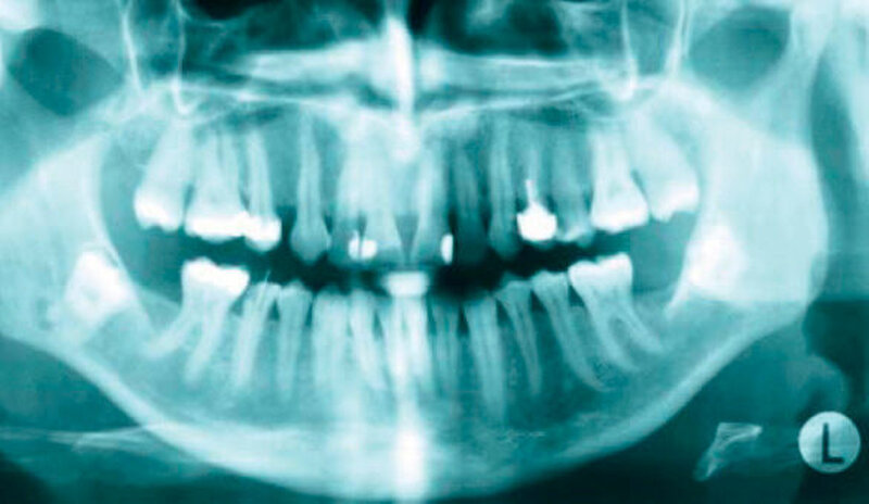 Eine 47-jährige Patientin wurde zur Entfernung der komplett retinierten Zähne 38 und 48 überwiesen. An der Wurzelspitze des Zahnes 48 fiel zusätzlich eine periradikuläre Transluzenz auf, die zur Indikationsstellung der Entfernung der Zähne führte (Abbildungen 1 und 2).