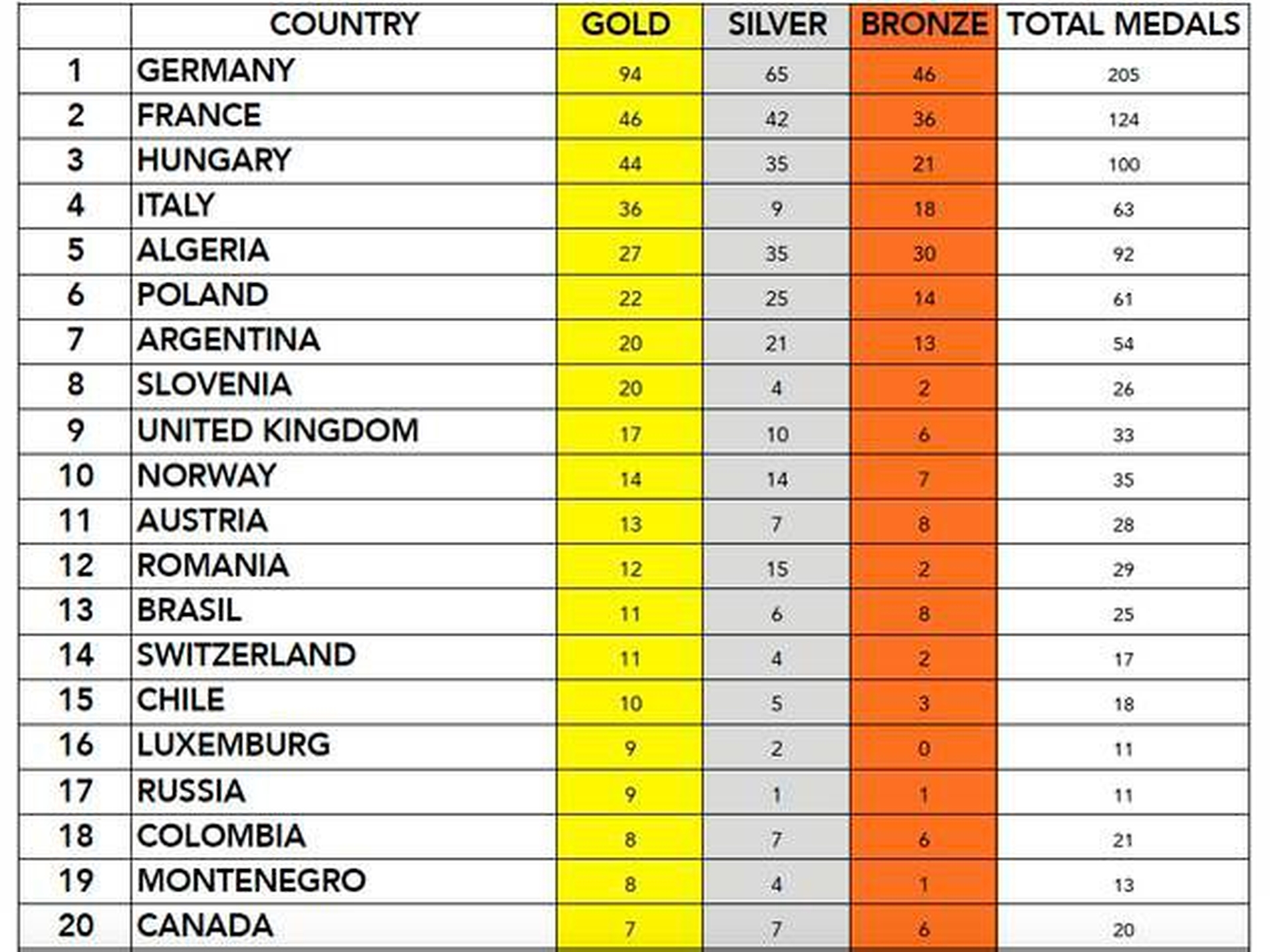 Nach Budva reisten 62 deutschen Athleten - sie kamen mit 94 Gold-, 65 Silber- und 46 Bronzemedaillen zurück. Das bedeutete erneut Platz 1 im internationalen Medaillenspiegel.