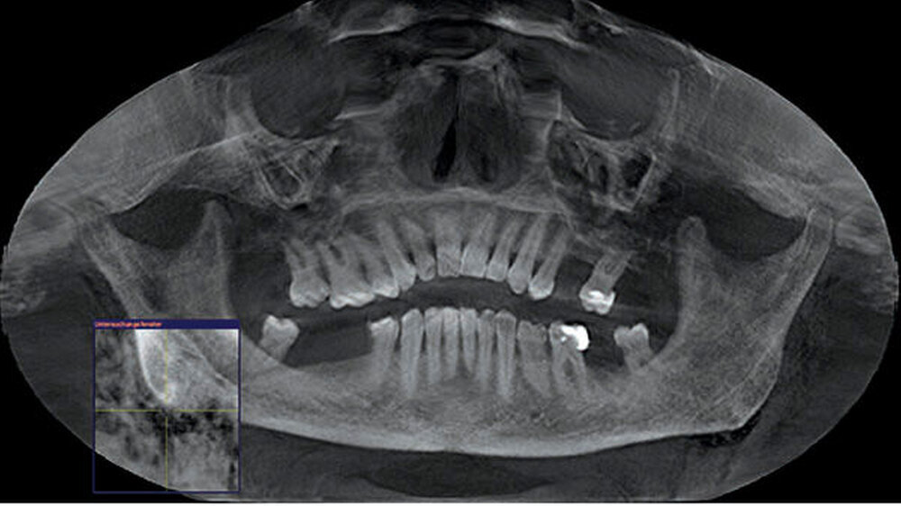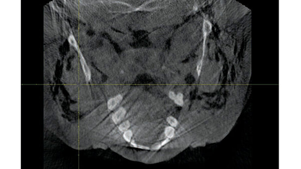 Weiterhin wird deutlich, dass bei in aller Regel doch sehr eingeschränkter Beurteilbarkeit von Weichgewebe im DVT in diesem speziellen Fall eine weiterführende Diagnostik und Therapie eingeleitet werden konnte.
