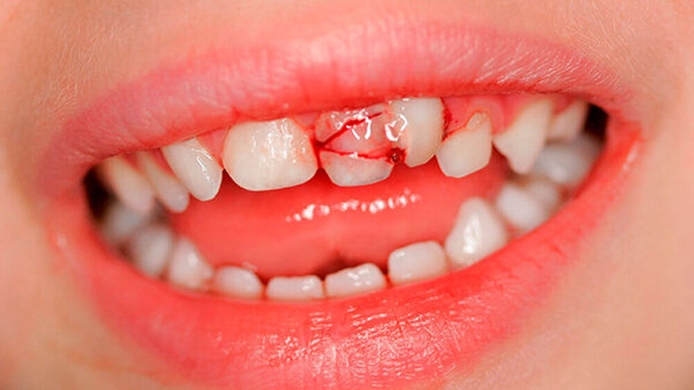 Nach Durchführung der zahnbezogenen Diagnostik inklusive Röntgen wurde die Diagnose komplizierte Kronenfraktur eines Zwillingszahns 61a/61b gestellt. Zur Abschätzung der Kooperation und Desensibilisierung für eine potenzielle Behandlung wurden die Zähne des Kleinkindes mit einem rotierenden Bürstchen geputzt.