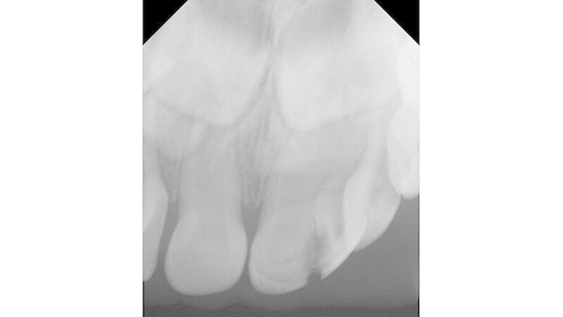 Ein zweieinhalbjähriger Junge wurde von seinen Eltern in der Abteilung Kinderzahnheilkunde des Zentrums für Zahn-, Mund- und Kieferheilkunde (ZZMK) der Universität Greifswald mit dem Wunsch nach Beurteilung der Situation vorgestellt. Er war wenige Stunden vorher beim Spielen mit der Schwester im Supermarkt auf den Mund gefallen war und hatte Schmerzen. Obwohl er noch so klein war, konnten wir bei seinem ersten Besuch bei uns neben der visuellen klinischen Inspektion einen Zahnfilm anfertigen.