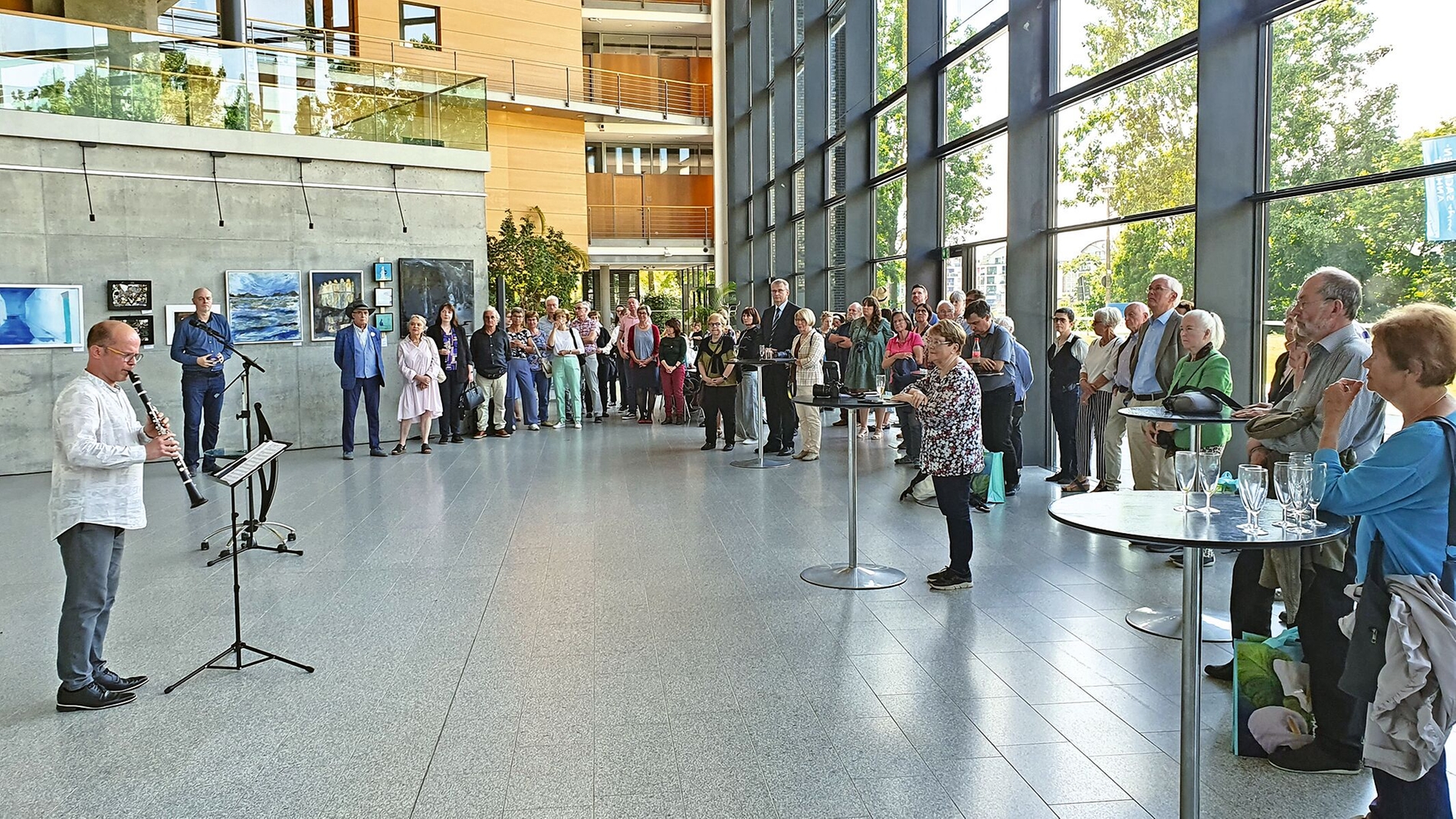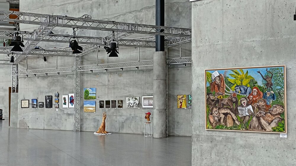 Im lichtdurchfluteten Foyer des Medienhauses werden Gemälde, Grafiken, Skulpturen und Fotografien von Ärzten und Zahnärzten sowie einzelnen Angehörigen weiterer Heilberufe aus ganz Deutschland gezeigt. Viele Künstlerinnen und Künstler sind Autodidakten und tauschen in ihrer Freizeit Stethoskop oder Sonde gegen Pinsel, Meißel oder Kamera.