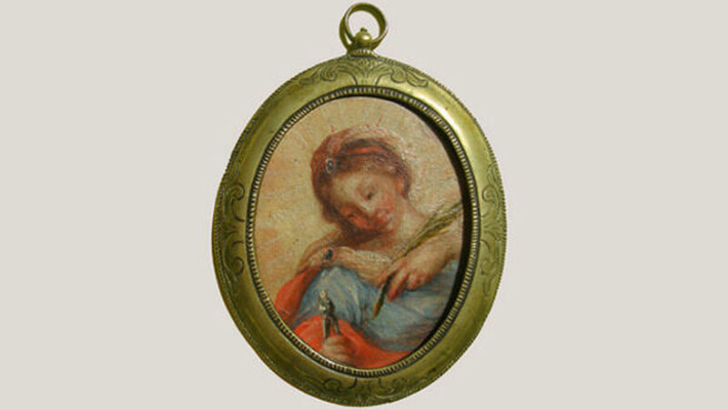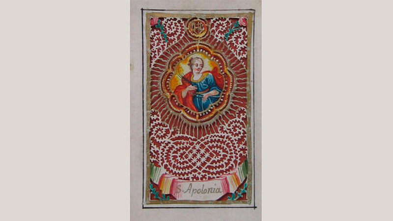 Amulette (siehe Foto), wie sie in der Sammlung BonaDent vertreten sind, übernahmen neben der heilenden Funktion die Aufgabe eines Talismans und zeigten, dass sich sein Träger unter den besonderen Schutz des auserwählten Heiligen gestellt hatte. Verstärkt wurde diese Wirkung durch die Segnung. Besonders hübsch ist ein kleines gemaltes Medaillon der Sammlung BonaDent, dass die Heilige Apollonia umgeben von zehn weiteren Heiligen zeigt.