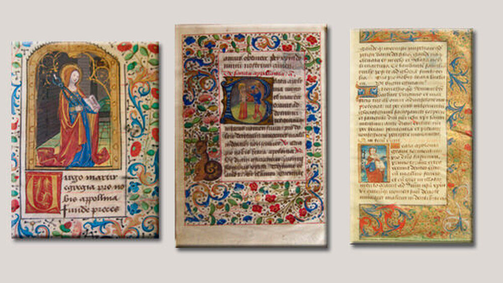 Bei Auktionen erwarb Manfred Schmitt, der Geschäftsführer der Firma BonaDent aus Frankfurt, für seine Kunstsammlung in den vergangenen 15 Jahren drei Arbeiten, die aus lateinischen Stundenbüchern aus dem 15. Jahrhundert stammen und sich mit der Geschichte der Heiligen Apollonia beschäftigen. Das ist etwas Besonderes, da die Heilige Apollonia, zur damaligen Zeit die Schutzpatronin der Zahnkranken, nicht im üblichen Kanon der Stundenbücher verankert war. Miniaturen, die sie als Fürbitterin zeigen, sind sehr selten.